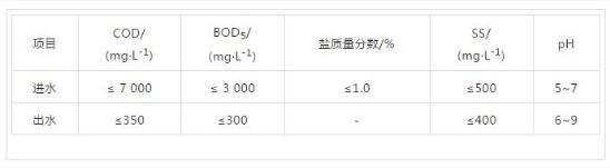 (3)COD濃度高。經水質檢測,該廢水B/C>0.3,為可生化性廢水,但由于COD約為7000mg/L,且廢水中含Cl-質量濃度高,單純采用傳統厭氧/好氧工藝無法保證廢水的穩定達標排放。